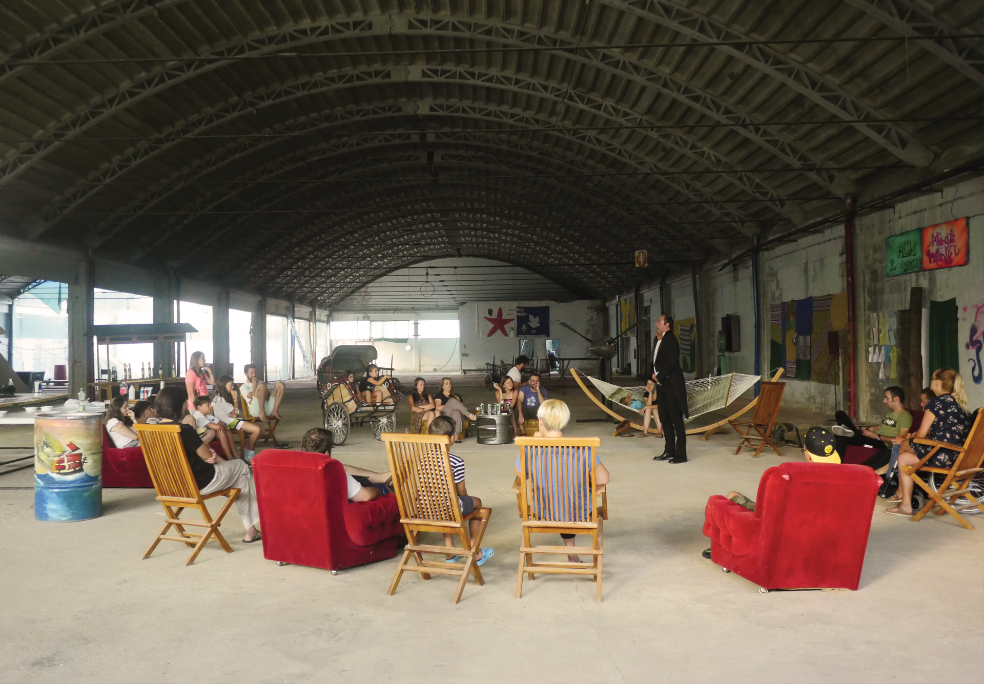 Bog Ludosti predstavlja se publici na najrazličitijim mjestima. Vodi se motom „Šta ti smeta što ti cijelo pozorište zviždi. Pljeskaj ti sebi sam!“ i ne bune ga iznenađeni pogledi slučajnih prolaznika koje iznenadi na prometnim šetalištima.